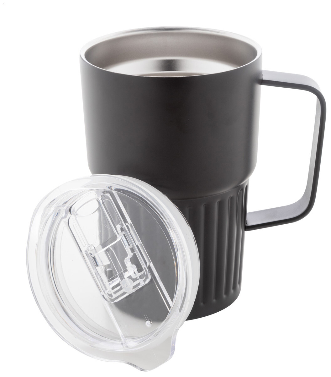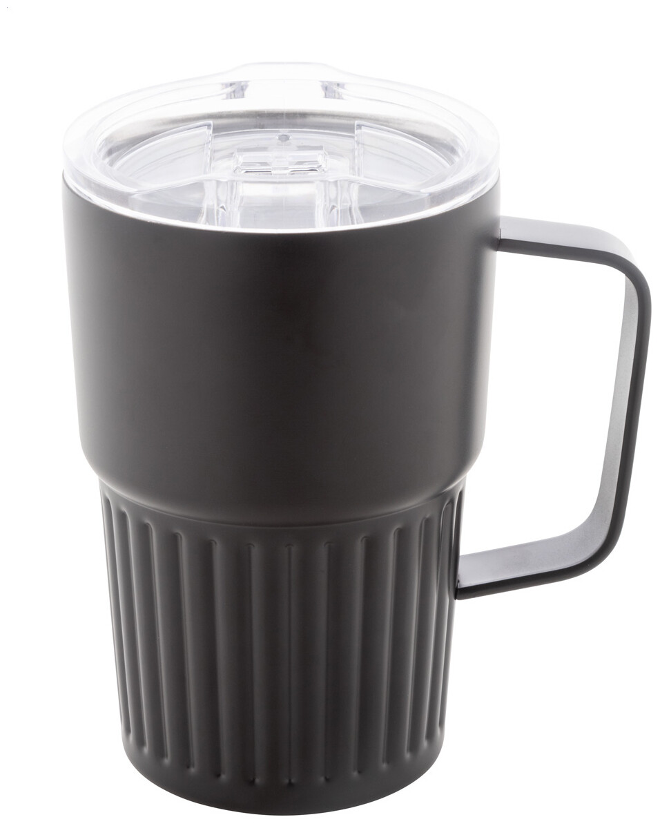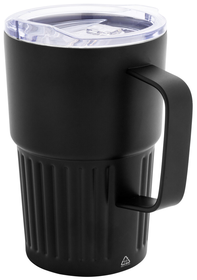 Dvoustěnný termo hrnek z recyklované nerezové oceli s víčkem na pití z ABS plastu. 470 ml.