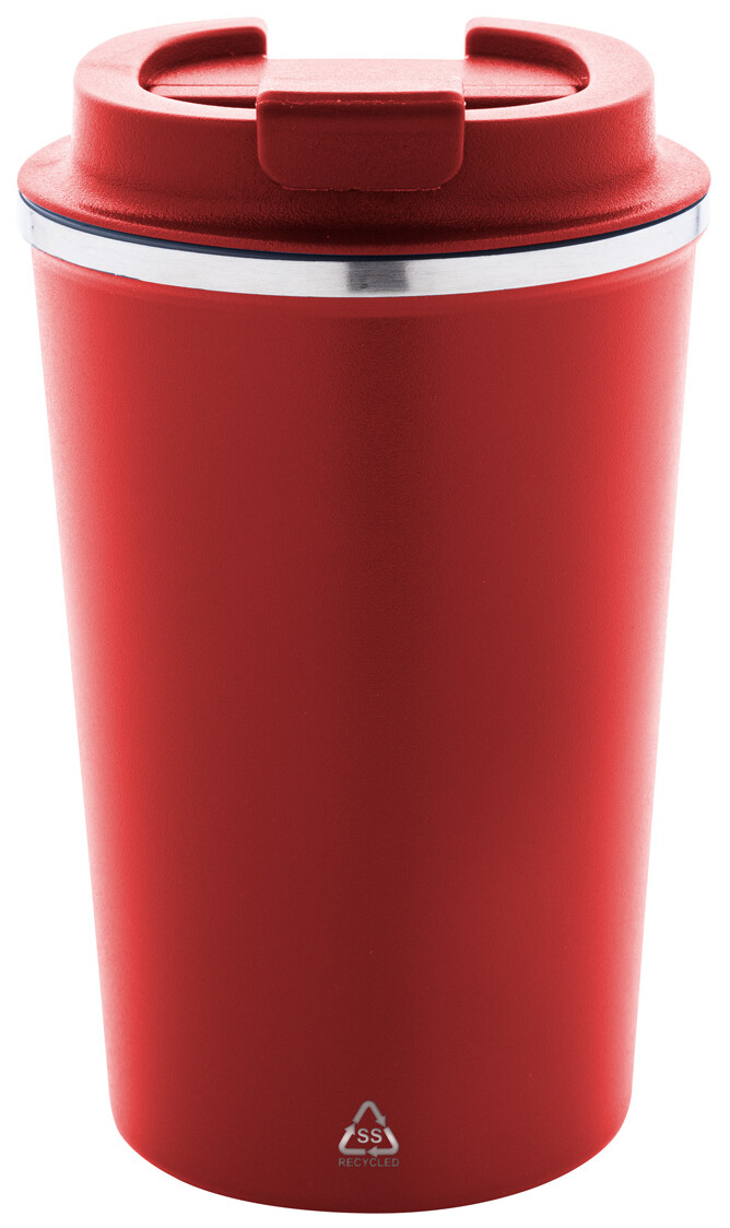 Dvoustěnný termo hrnek z recyklované nerezové oceli s víčkem na pití z PP. 350 ml.
