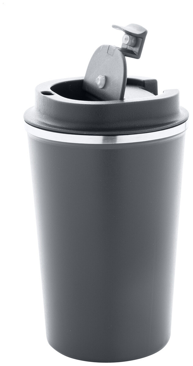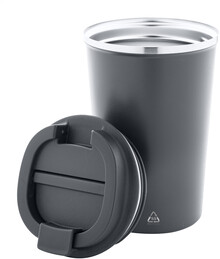 Dvoustěnný termo hrnek z recyklované nerezové oceli s víčkem na pití z PP. 350 ml.
