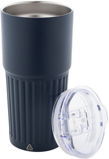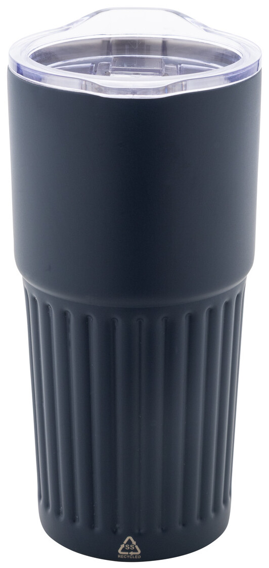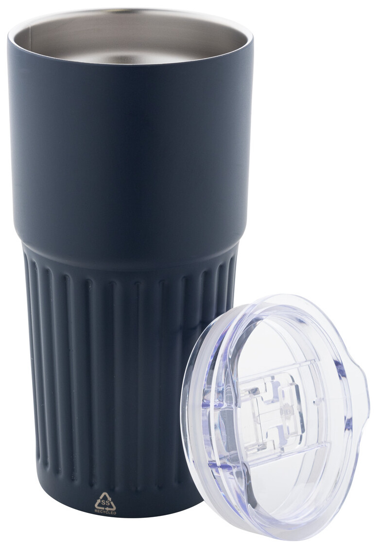 Dvoustěnný termo hrnek z recyklované nerezové oceli s víčkem na pití z ABS plastu. 600 ml.