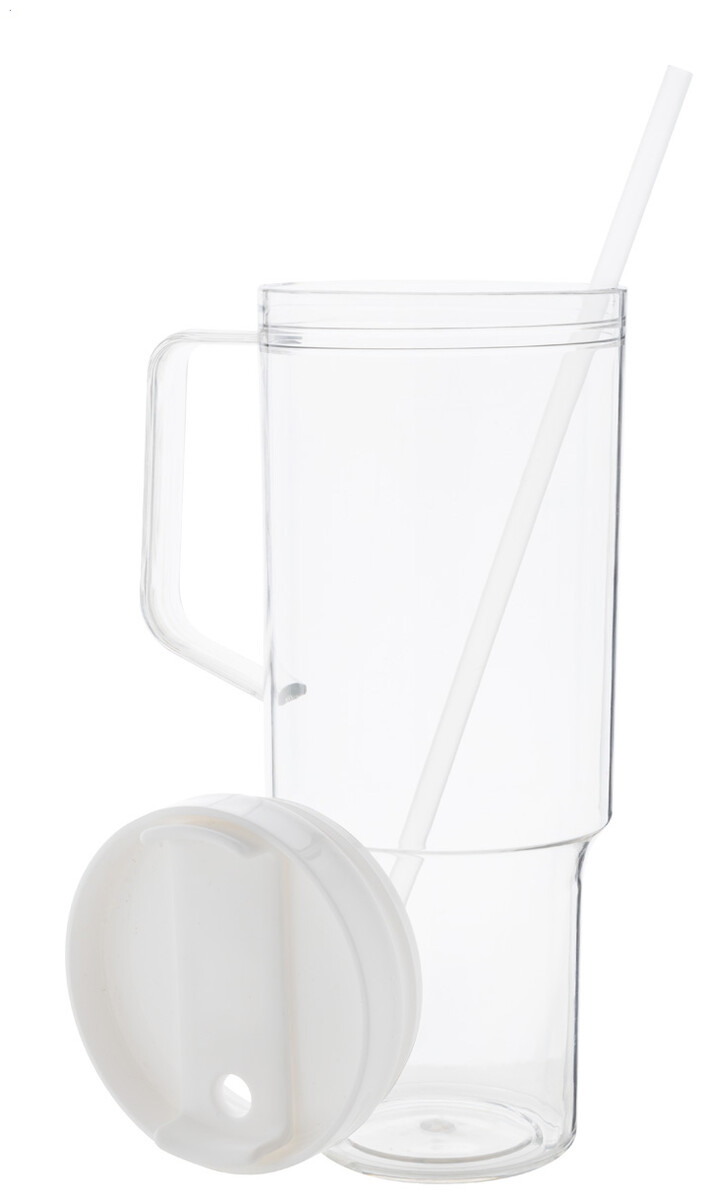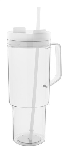 Jednostěnný cestovní hrnek z RPET s PP víčkem na pití a brčkem v odpovídající barvě. 1200 ml.