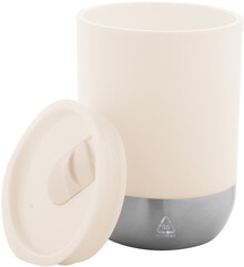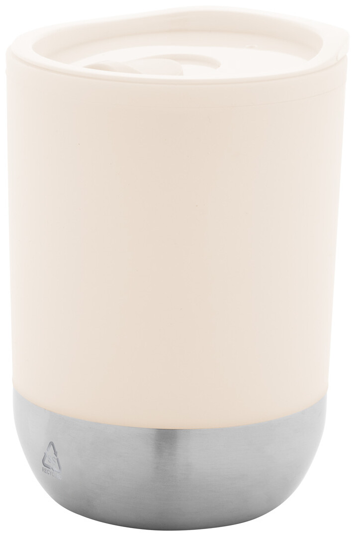 Dvoustěnný termo hrnek s PP plastovou izolací se dnem z recyklované nerezové oceli a víčkem na pití. 300 ml.