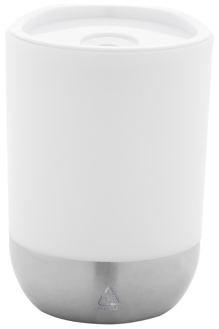 Dvoustěnný termo hrnek s PP plastovou izolací se dnem z recyklované nerezové oceli a víčkem na pití. 300 ml.