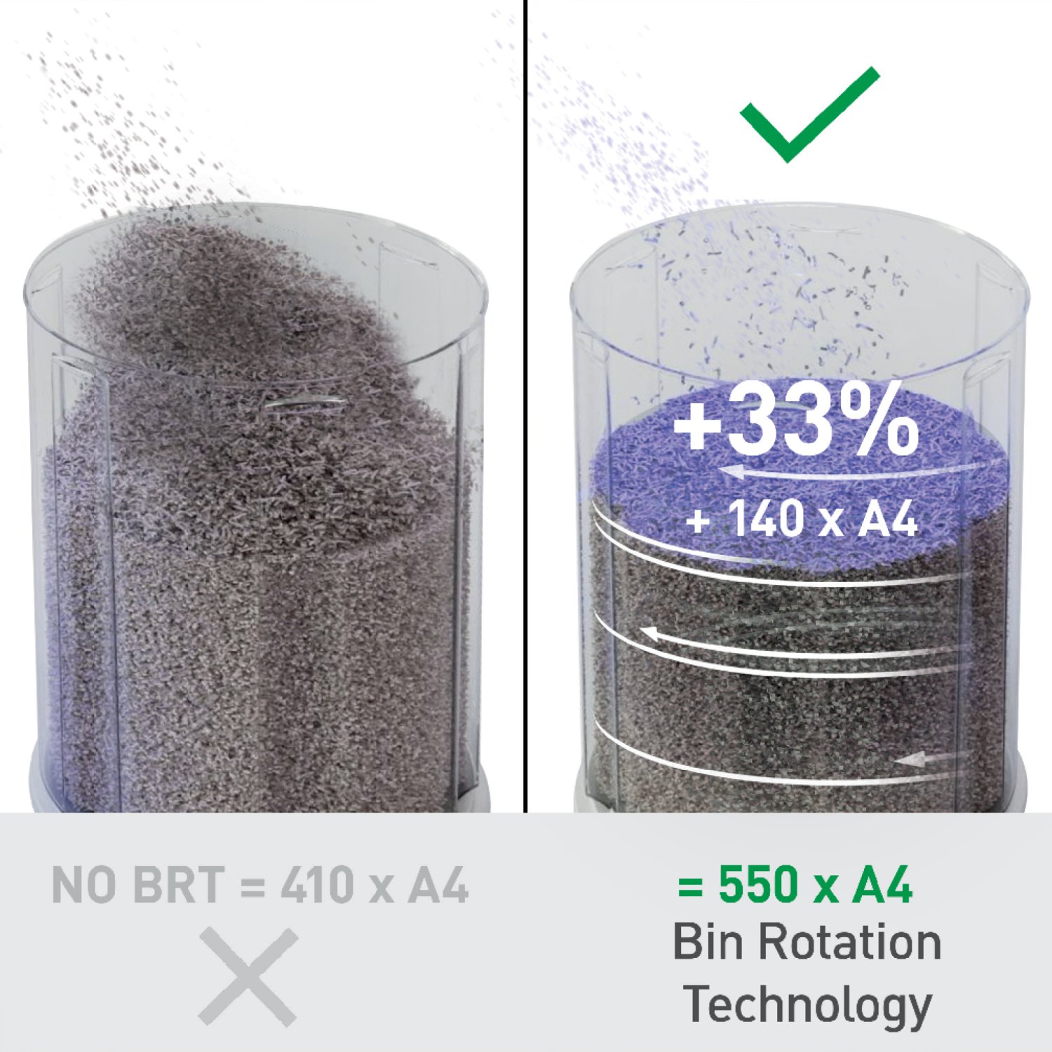 Kapacita koše: 35 l, pojme až 550 listů A4 díky technologii rotujícího koše (BRT)