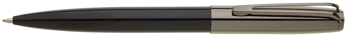 QINATO PLUS kovová otočná propiska v stříbrné papírové krabičce, černá. Náplň velkoobsahová kov modře píšící.