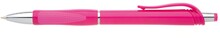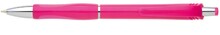 Růžová, plastová propiska s pochromovanými doplňky jako jsou klip, tělo cvakátka a proužek uprostřed těla tužky. Grip je částečně pogumovaný v barvě tužky, stejně jako klip a vrchní část cvakátka. Náplň X20, hrot 1mm.