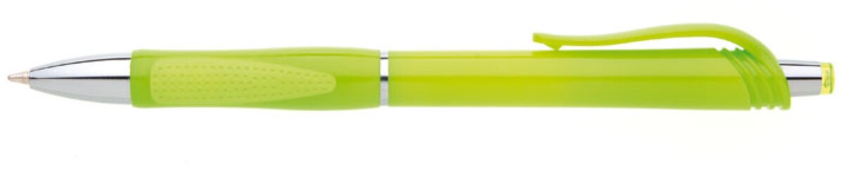 Světle zelená, plastová propiska s pochromovanými doplňky jako jsou klip, tělo cvakátka a proužek uprostřed těla tužky. Grip je částečně pogumovaný v barvě tužky, stejně jako klip a vrchní část cvakátka. Náplň X20, hrot 1mm.