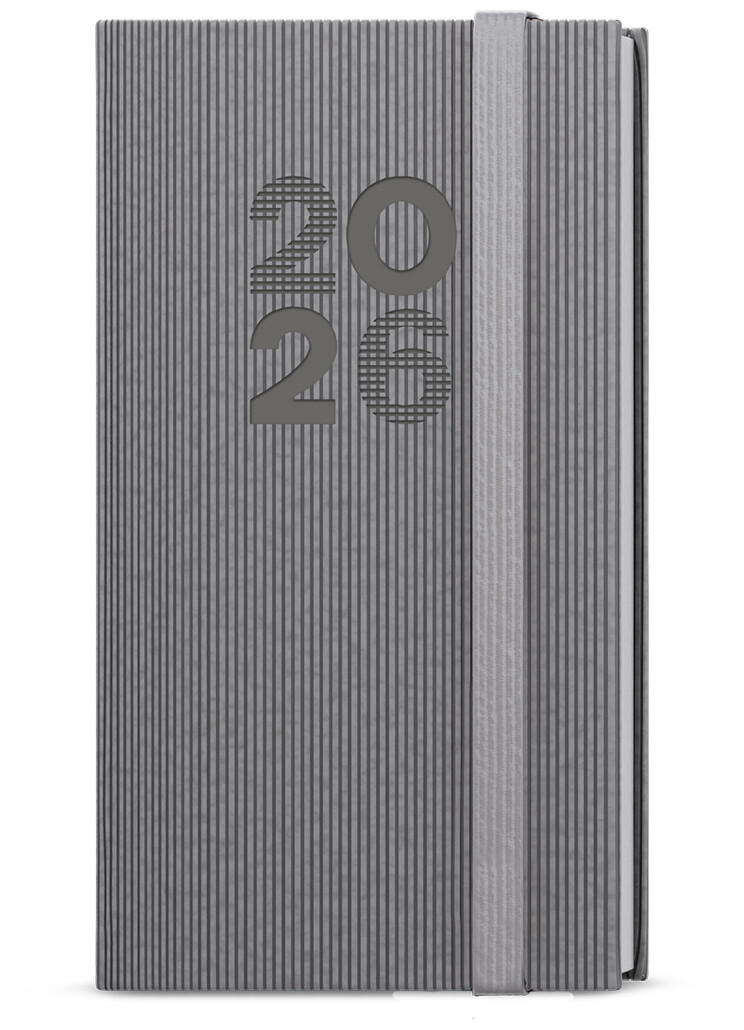 Kapesní týdenní diář v šedé barvě ze strukturovaného materiálu a s gumičkou. Jednoduchost, která neomrzí. Moderní doplněk do každé kapsy. Diář má velký prostor pro poznámky a plánování.