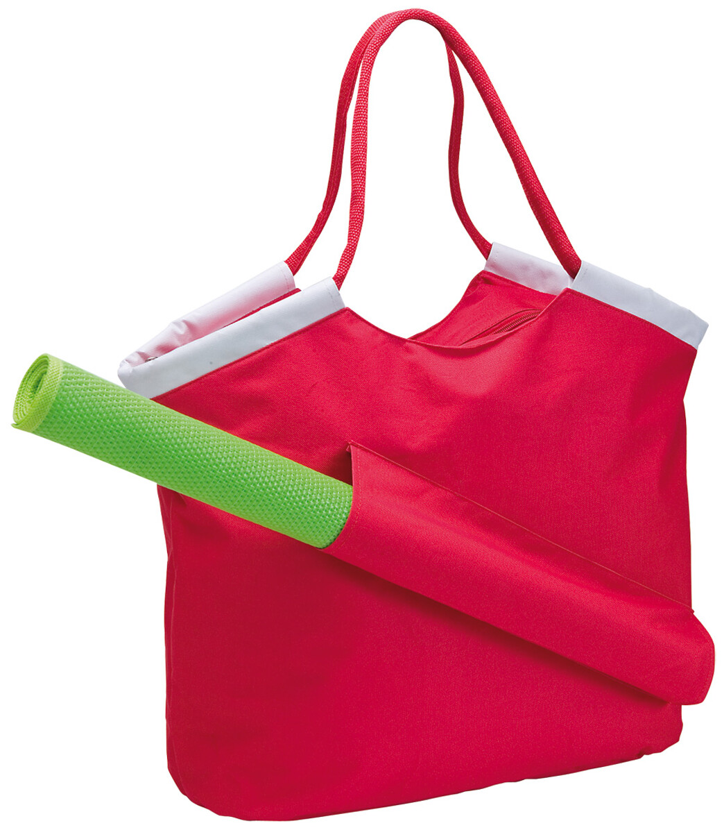 Plážová taška z polyesteru 600D s držákem na plážovou podložku. Dodává se bez plážové podložky.