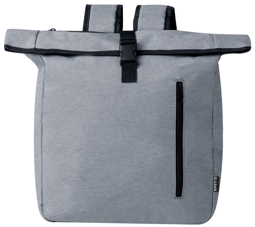 Batoh na kolo z polyesteru 600D RPET s přední kapsou na zip a odnímatelnými polstrovanými ramenními popruhy. Se skrytými svorkami pro montáž na rám.