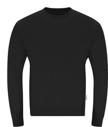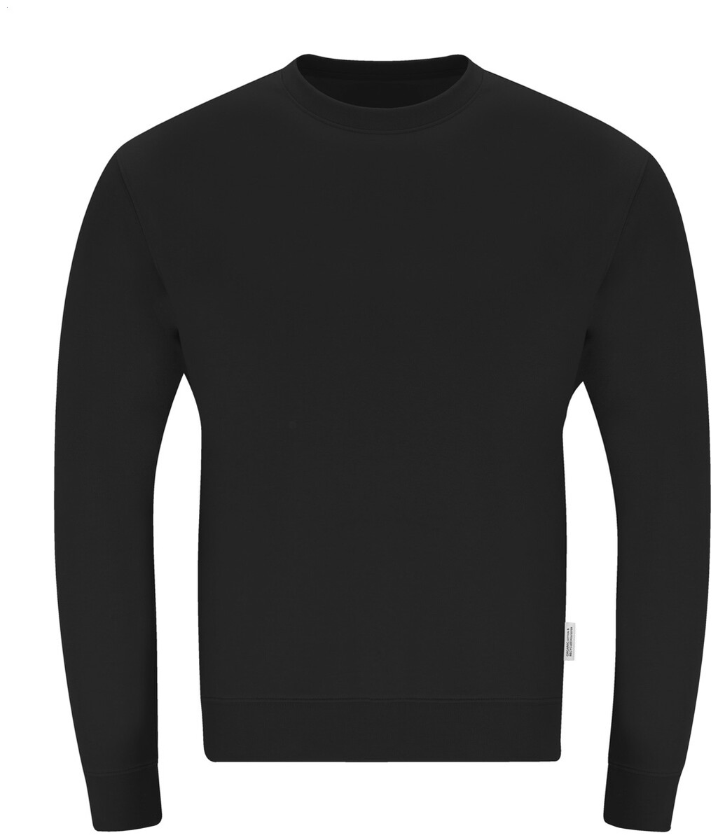Mikina s kulatým výstřihem ze 60% organické bavlny a 40% RPET polyesteru, 280 g/m2.