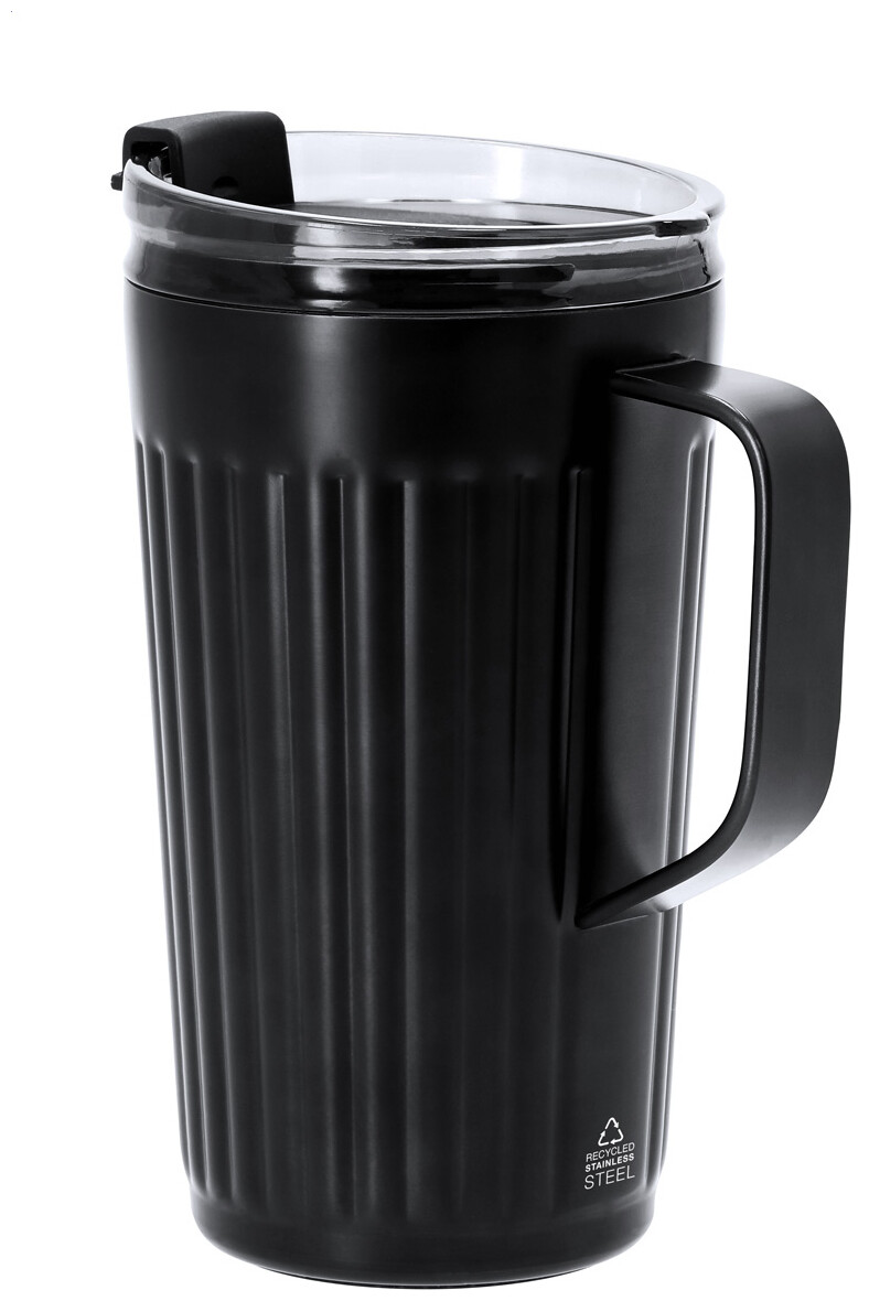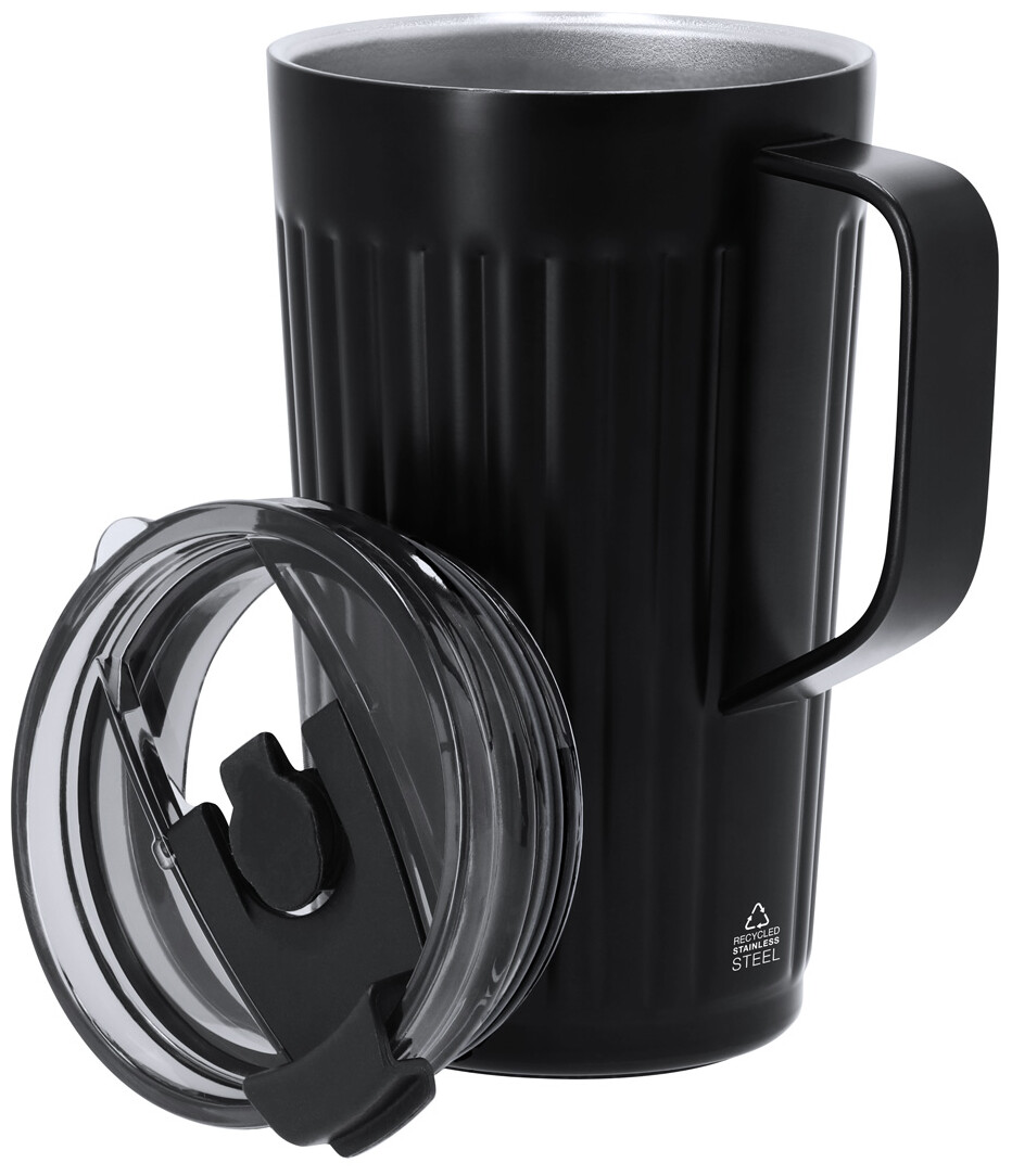 Dvoustěnný termo hrnek z recyklované nerezové oceli s víčkem na pití, 350 ml.