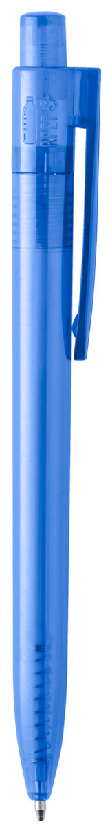 Průhledné plastové kuličkové pero RPET. S modrou náplní.