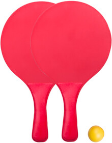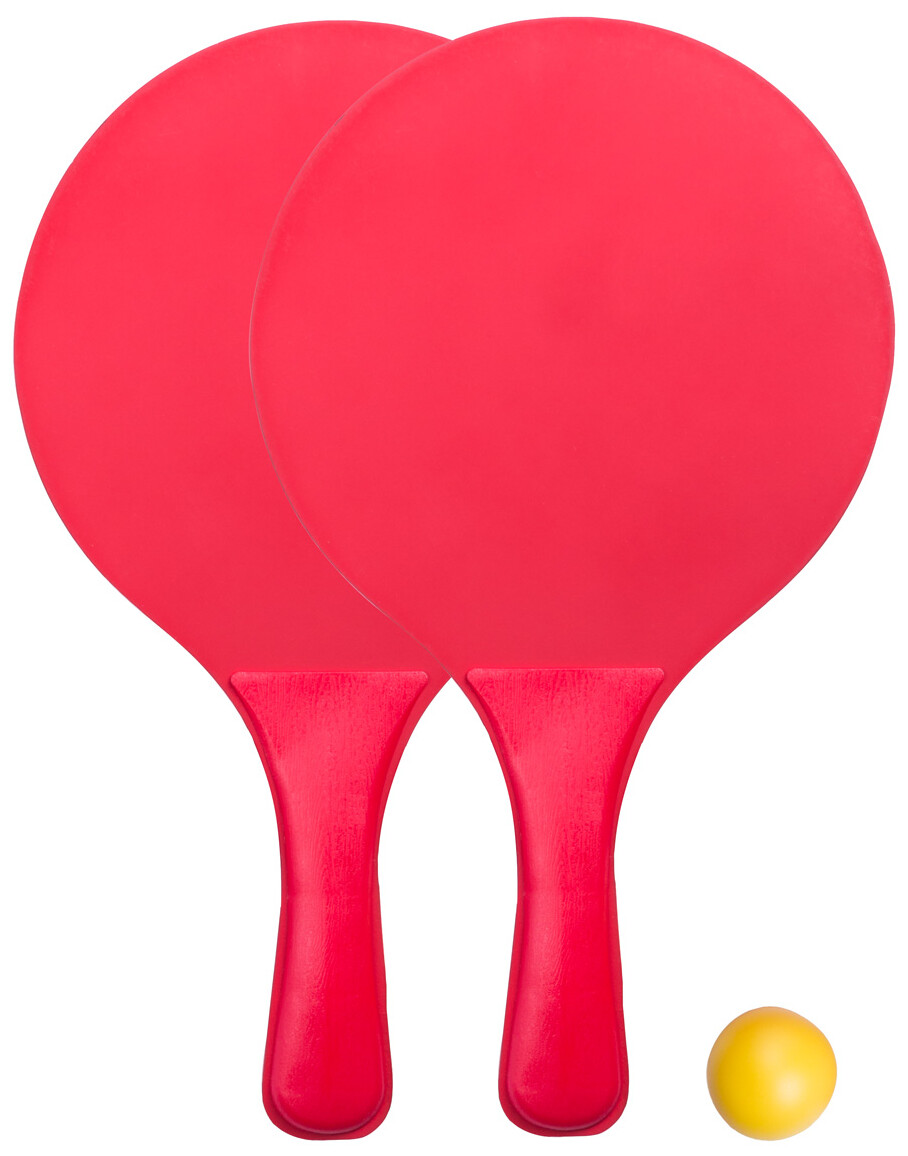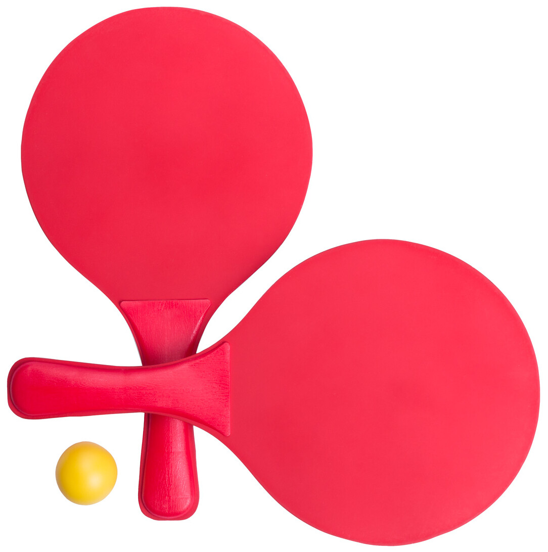 Plážový tenis se 2 barevnými raketami a jedním míčkem, vyrobený ze dřeva a plastu.