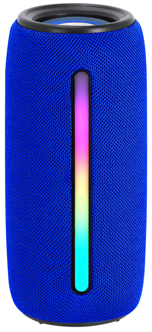 Bezdrátový reproduktor potažený polyesterovou tkaninou vícebarevné LED světlo (s 5 režimy svícení) a popruh na přenášení. Se 2 reproduktory, funkcí hands-free volání a vestavěnou dobíjecí baterií (1200 mAh). Včetně nabíjecího kabelu USB.