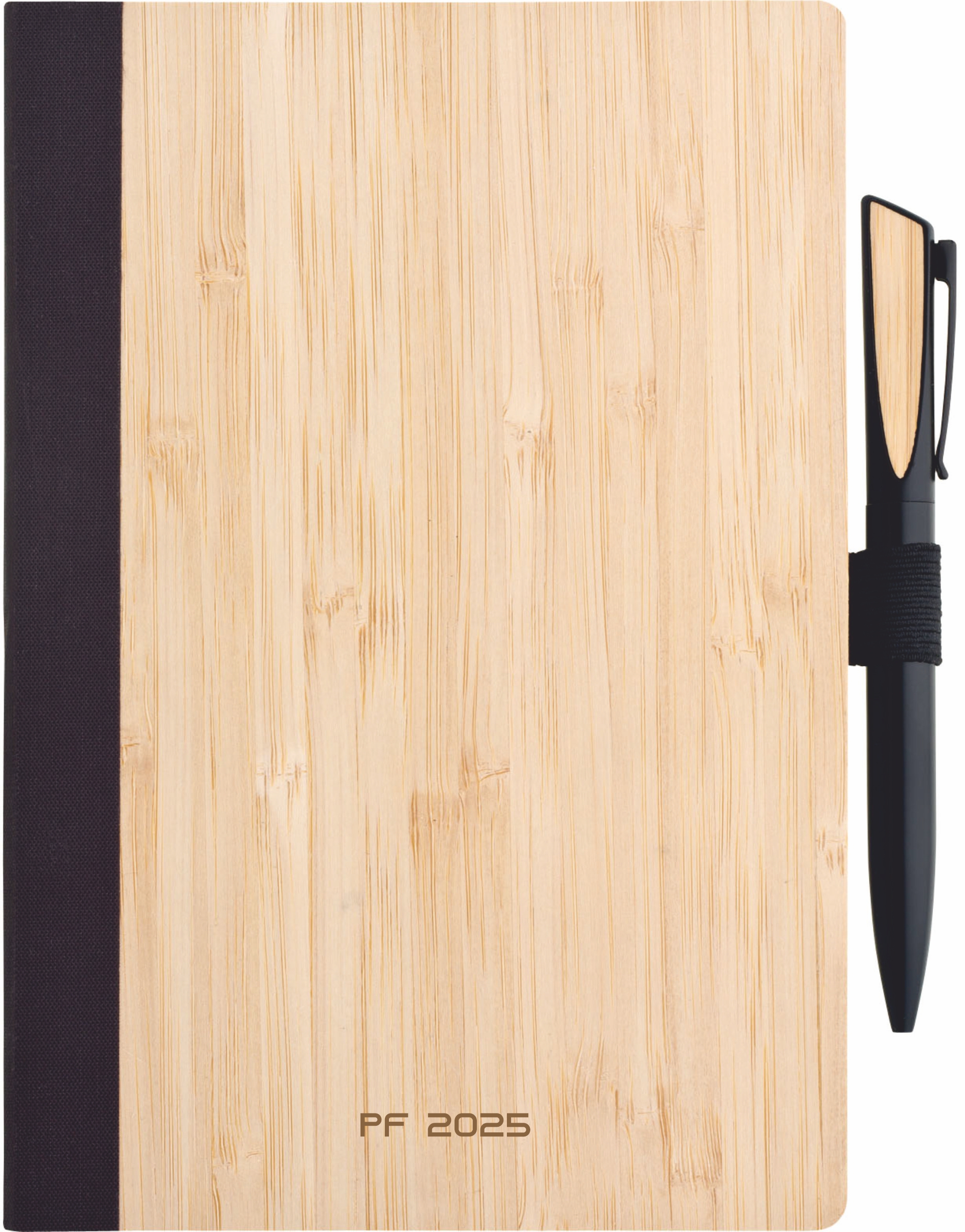 Poznámkový blok, zápisník v bambusových deskách s kovovou propiskou