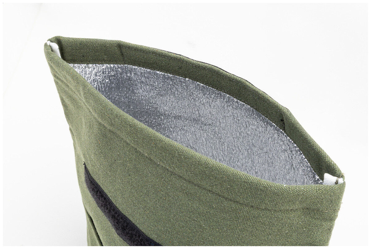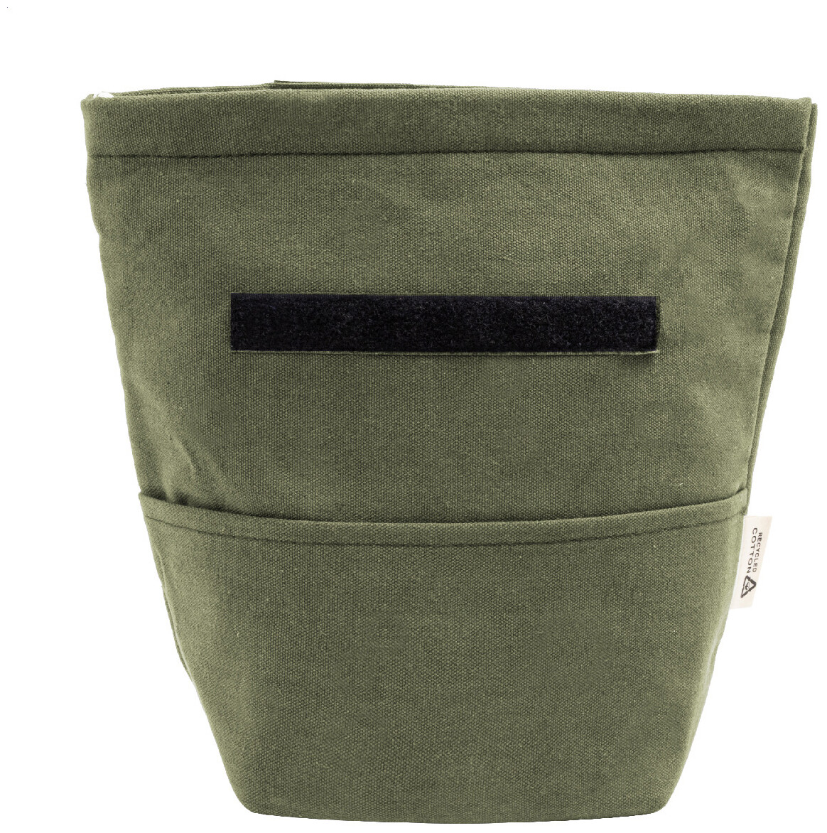 Chladicí taška z recyklovaného plátna s rolovacím vrškem, přední kapsou, hliníkovou výplní a zapínáním na suchý zip. 70 % recyklované bavlny a 30 % RPET polyesteru. S výrazným štítkem recyklované bavlny.