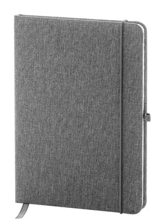 Blok A5 potažený polyesterem 300D RPET s 80 čistými listy. S gumovým páskem, záložkou a držákem na pero.