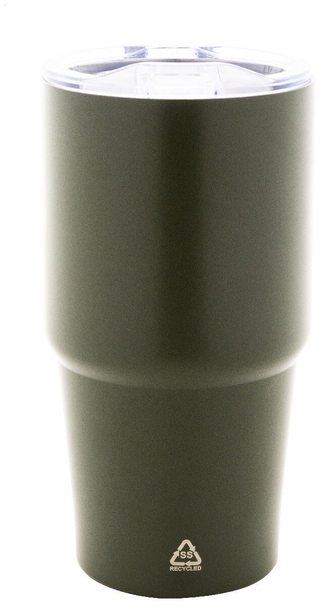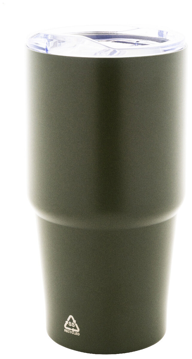 Dvoustěnný vakuově izolovaný termohrnek z recyklované nerezové oceli s víčkem z polystyrenového plastu. 600 ml.
