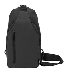 Voděodolná RPET crossbody taška na zavěšení přes rameno s kapsami na zip, zapínáním na přezku a polstrovanými zády. S nastavitelným ramenním popruhem vybaveným polohami na levé a pravé straně. Polyester RPET 600D potažený PU, s výraznou etiketou RPET.