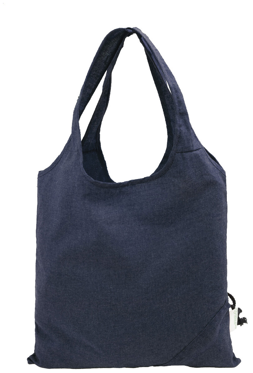 Skládací nákupní taška ze 70 % recyklované bavlny a 30 % polyesteru RPET, 140 g/m2. S výrazným štítkem z recyklované bavlny.