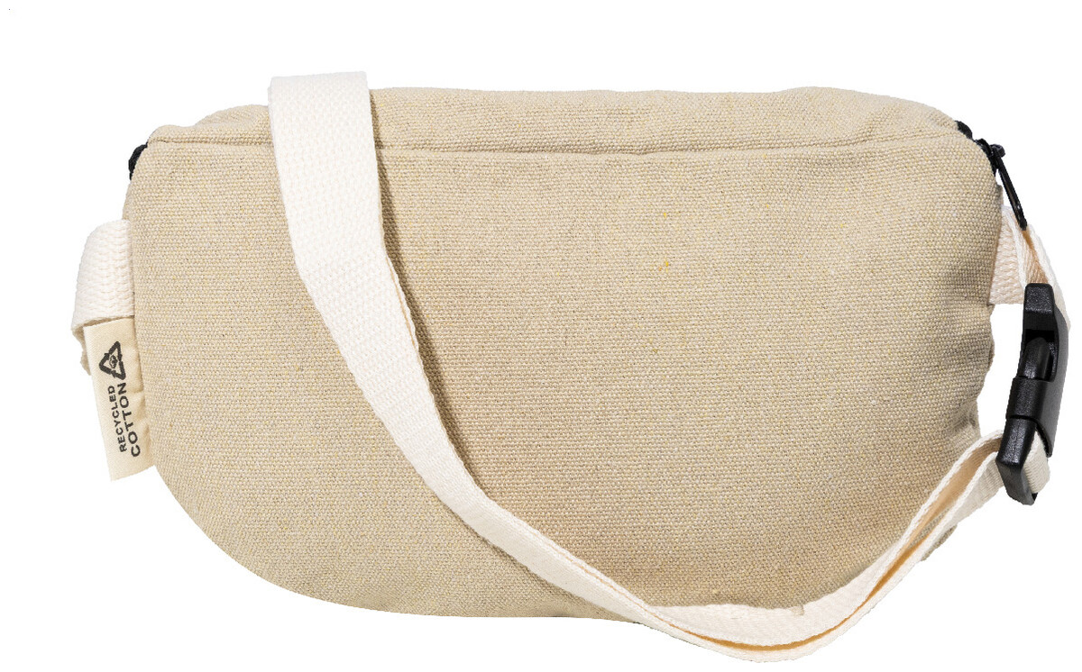 Ledvinka z recyklovaného plátna s přihrádkou na zip a nastavitelným popruhem. 70 % recyklované bavlny a 30 % recyklovaného polyesteru. S výraznou etiketou z recyklované bavlny.