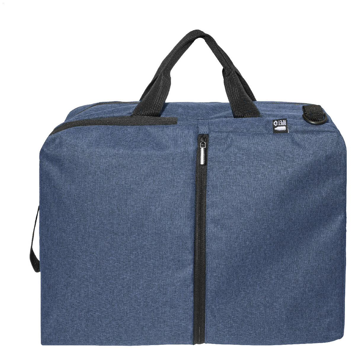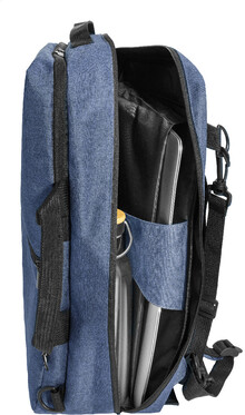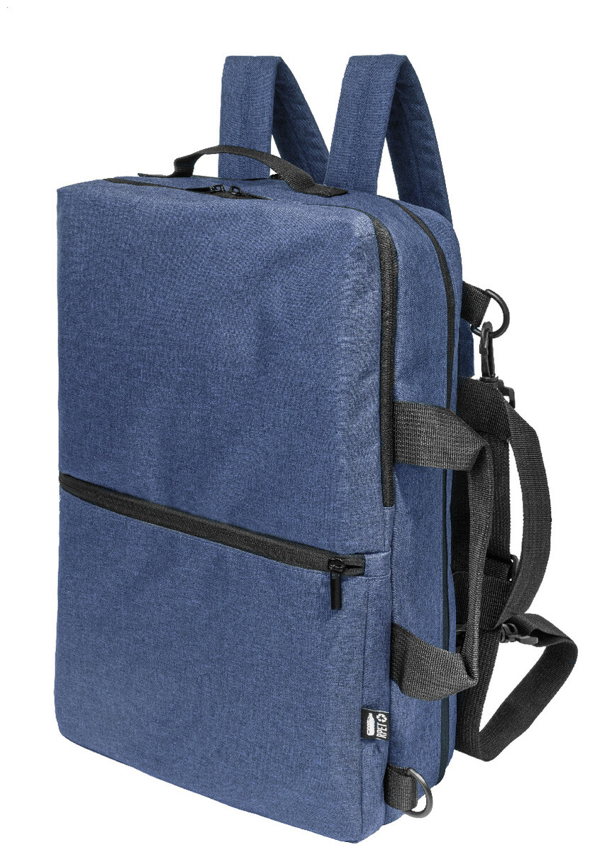 Dvojfunkční RPET batoh a taška na dokumenty s přihrádkou na zip, 2 předními kapsami na zip a polstrovanou přihrádkou na notebook (15"). S polstrovanými zády a ramenními popruhy. Součástí je i odnímatelný ramenní popruh pro použití jako taška na dokumenty. 600D RPET polyester s výrazným štítkem RPET.