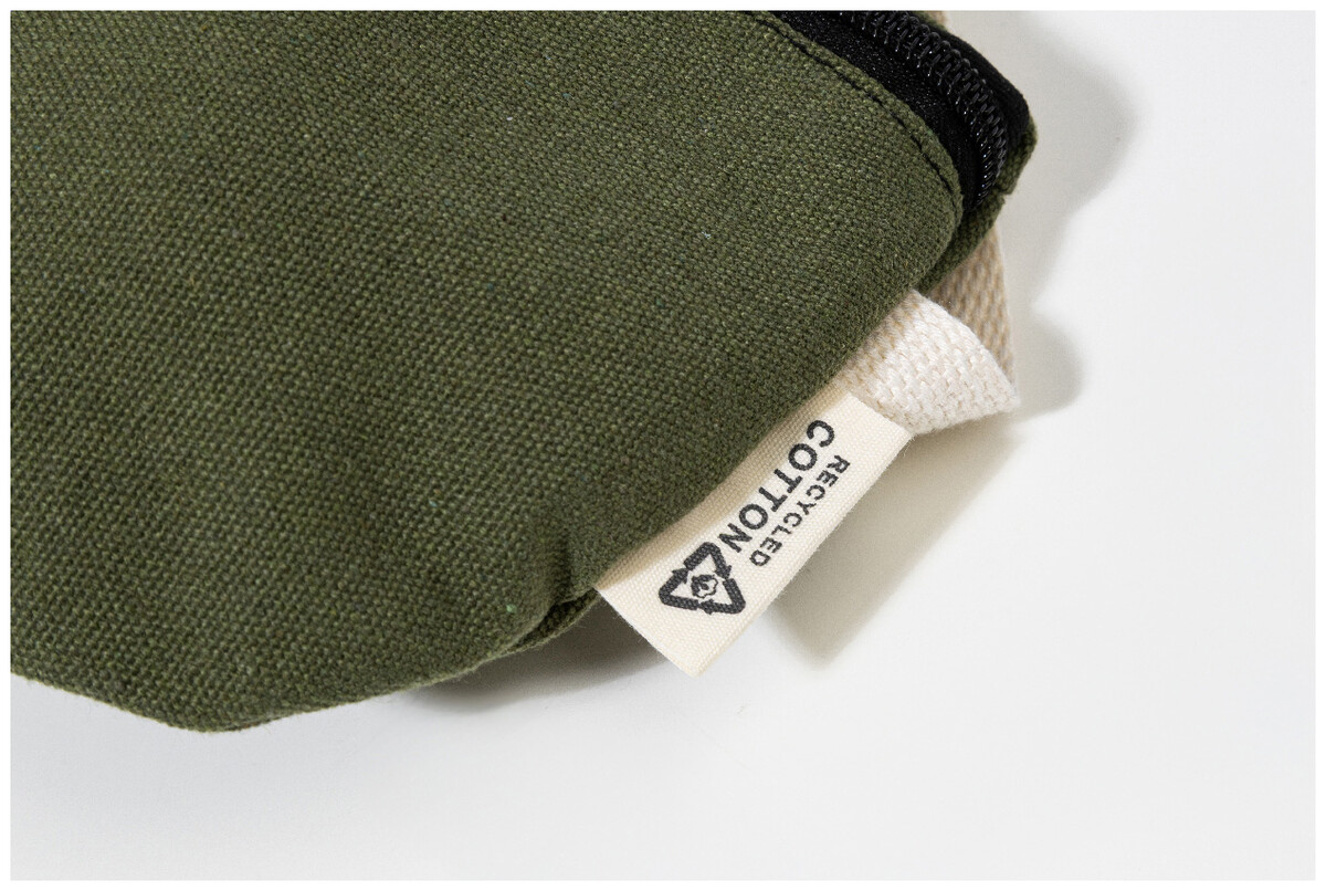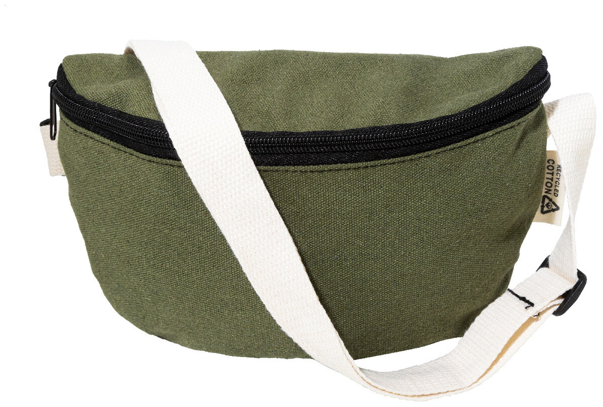 Ledvinka z recyklovaného plátna s přihrádkou na zip a nastavitelným popruhem. 70 % recyklované bavlny a 30 % recyklovaného polyesteru. S výraznou etiketou z recyklované bavlny.