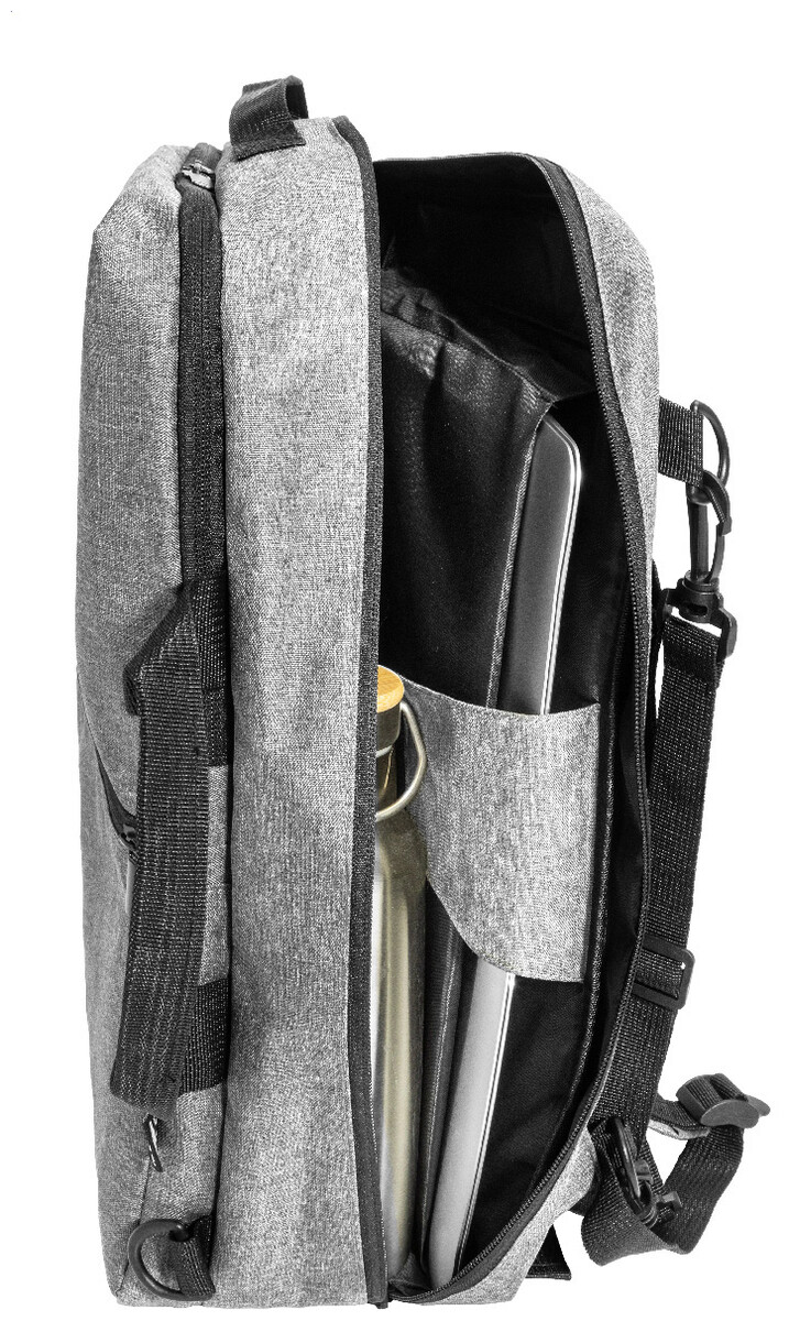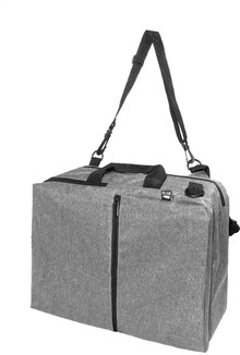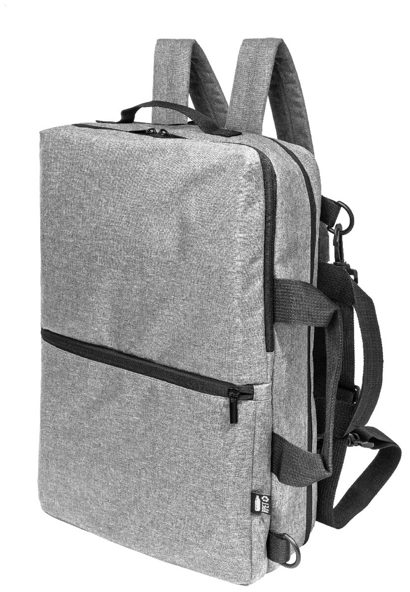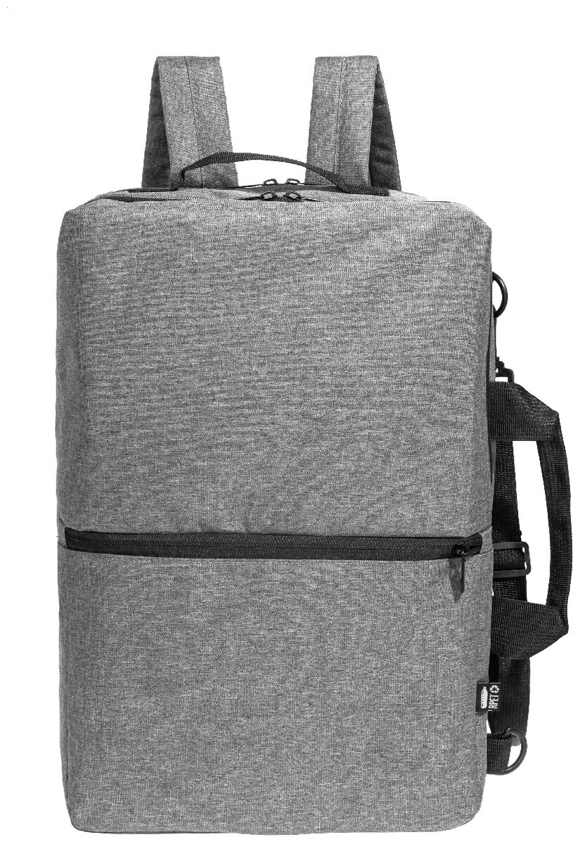 Dvojfunkční RPET batoh a taška na dokumenty s přihrádkou na zip, 2 předními kapsami na zip a polstrovanou přihrádkou na notebook (15"). S polstrovanými zády a ramenními popruhy. Součástí je i odnímatelný ramenní popruh pro použití jako taška na dokumenty. 600D RPET polyester s výrazným štítkem RPET.