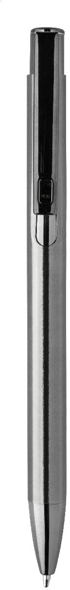 Kuličkové pero z recyklovaného hliníku s lesklým kovovým povrchem. S modrou náplní.