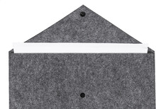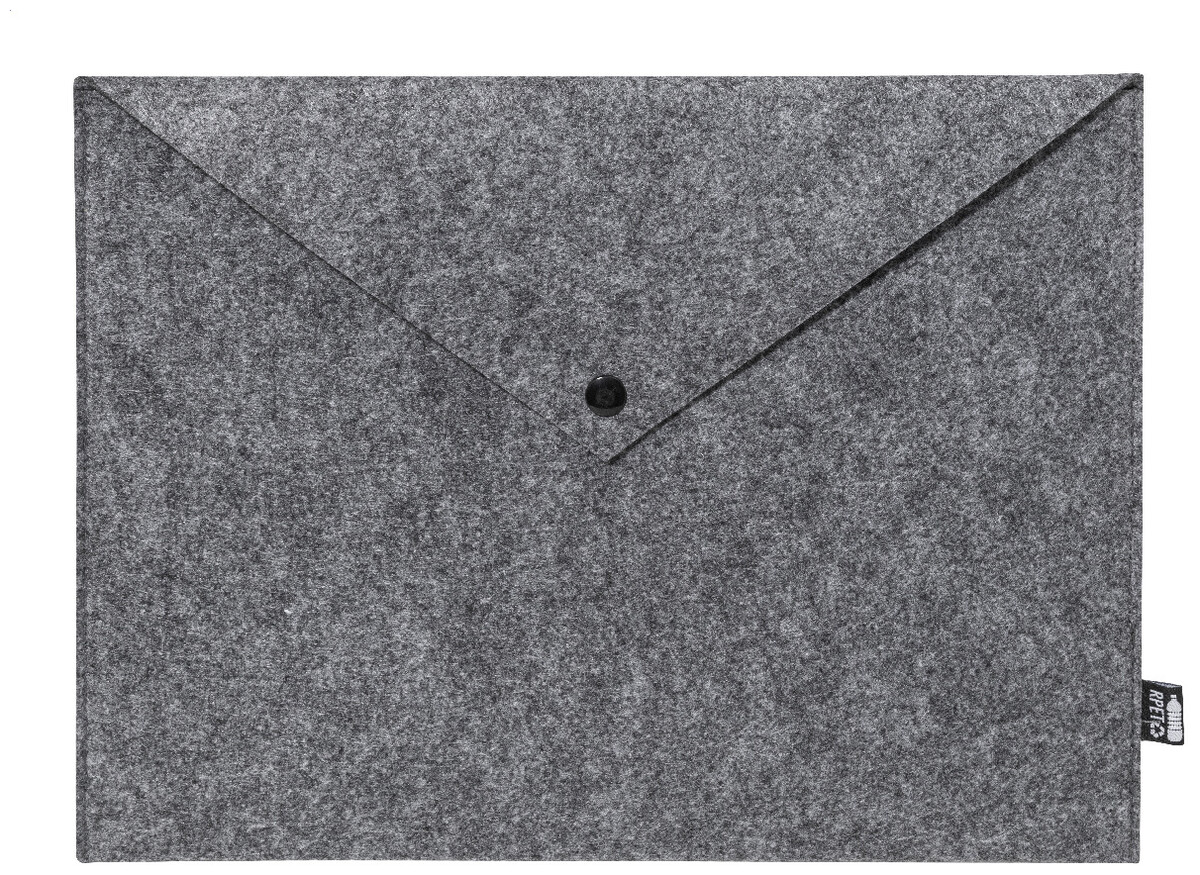 Taška na dokumenty nebo pouzdro na notebook z RPET plsti s knoflíkovým zapínáním. Vhodné pro notebooky do 13". S výrazným štítkem RPET.