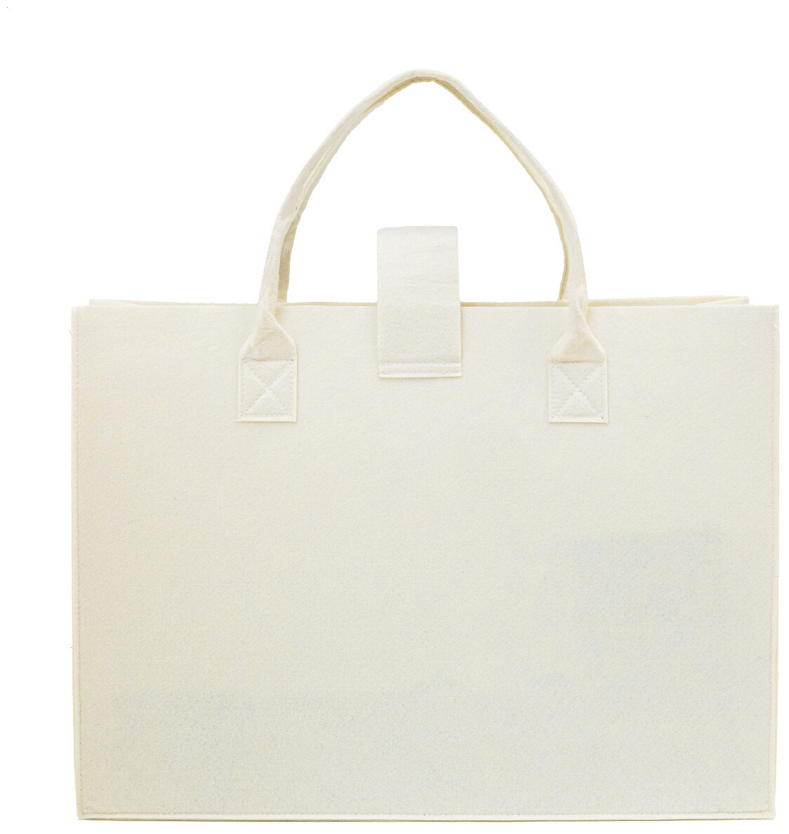 Nákupní taška z RPET plsti s klínkem, zapínáním na knoflíky a krátkými uchy. S výraznou etiketou z RPET.