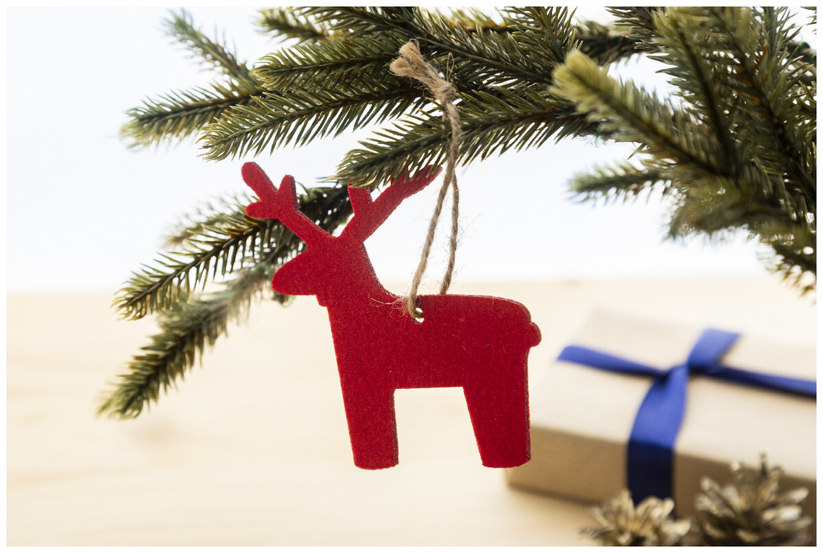 Vánoční ozdoba na stromeček z RPET plsti s jutovou šňůrkou.