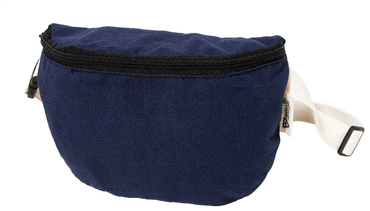 Ledvinka z recyklovaného plátna s přihrádkou na zip a nastavitelným popruhem. 70 % recyklované bavlny a 30 % recyklovaného polyesteru. S výraznou etiketou z recyklované bavlny.