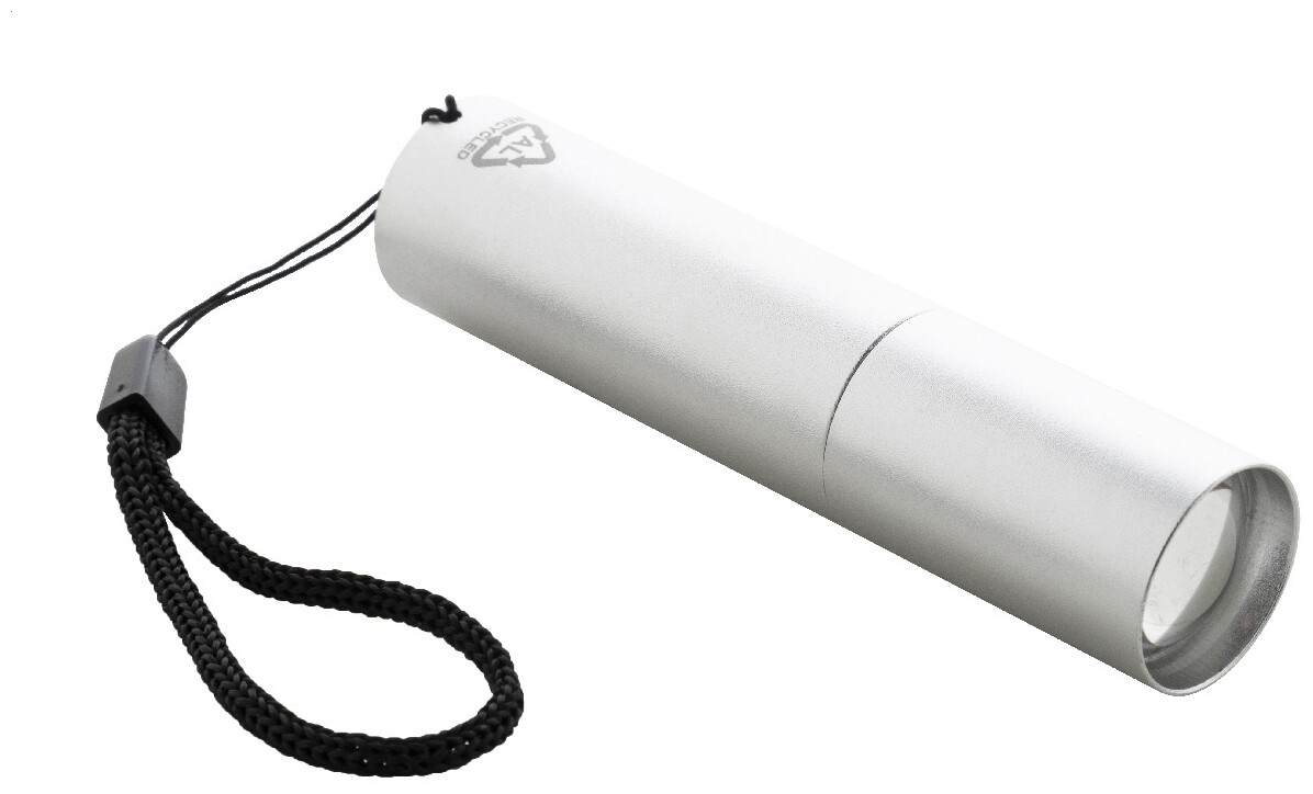 Baterka z recyklovaného hliníku s vestavěnou dobíjecí baterií USB (400 mAh) a popruhem na nošení. S vysoce výkonným COB světlem s možností zoomu a 3 světelnými režimy. Včetně nabíjecího kabelu USB.