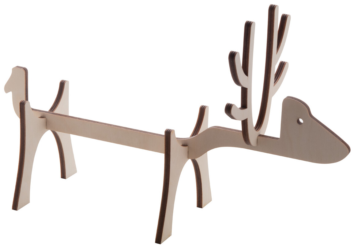 Stojan na láhev z březové překližky ve tvaru soba. Dodáváno rozložené.