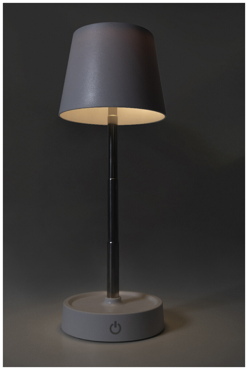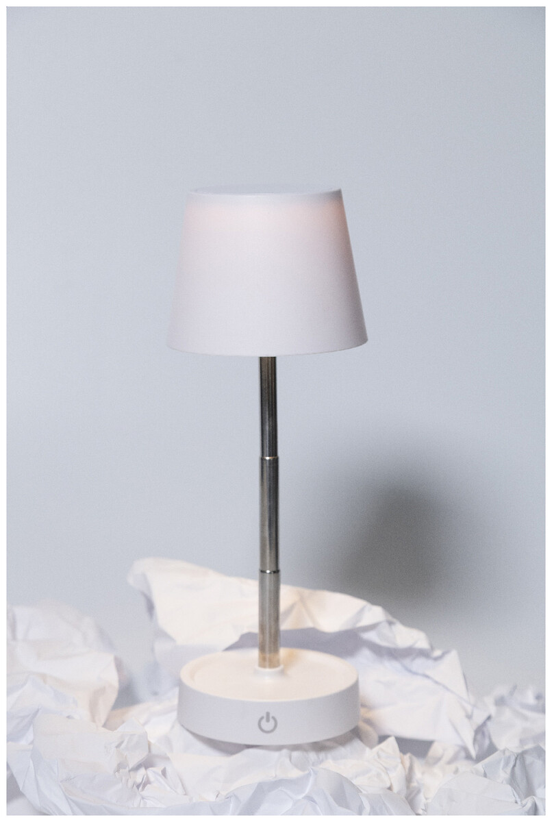 Teleskopická stolní lampa z recyklovaného ABS s 12 LED diodami, nastavitelným jasem a dobíjecí baterií USB 1200 mAh. Včetně nabíjecího kabelu USB.