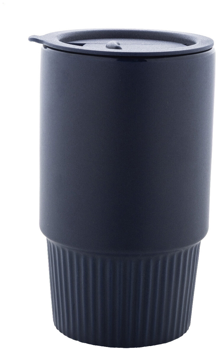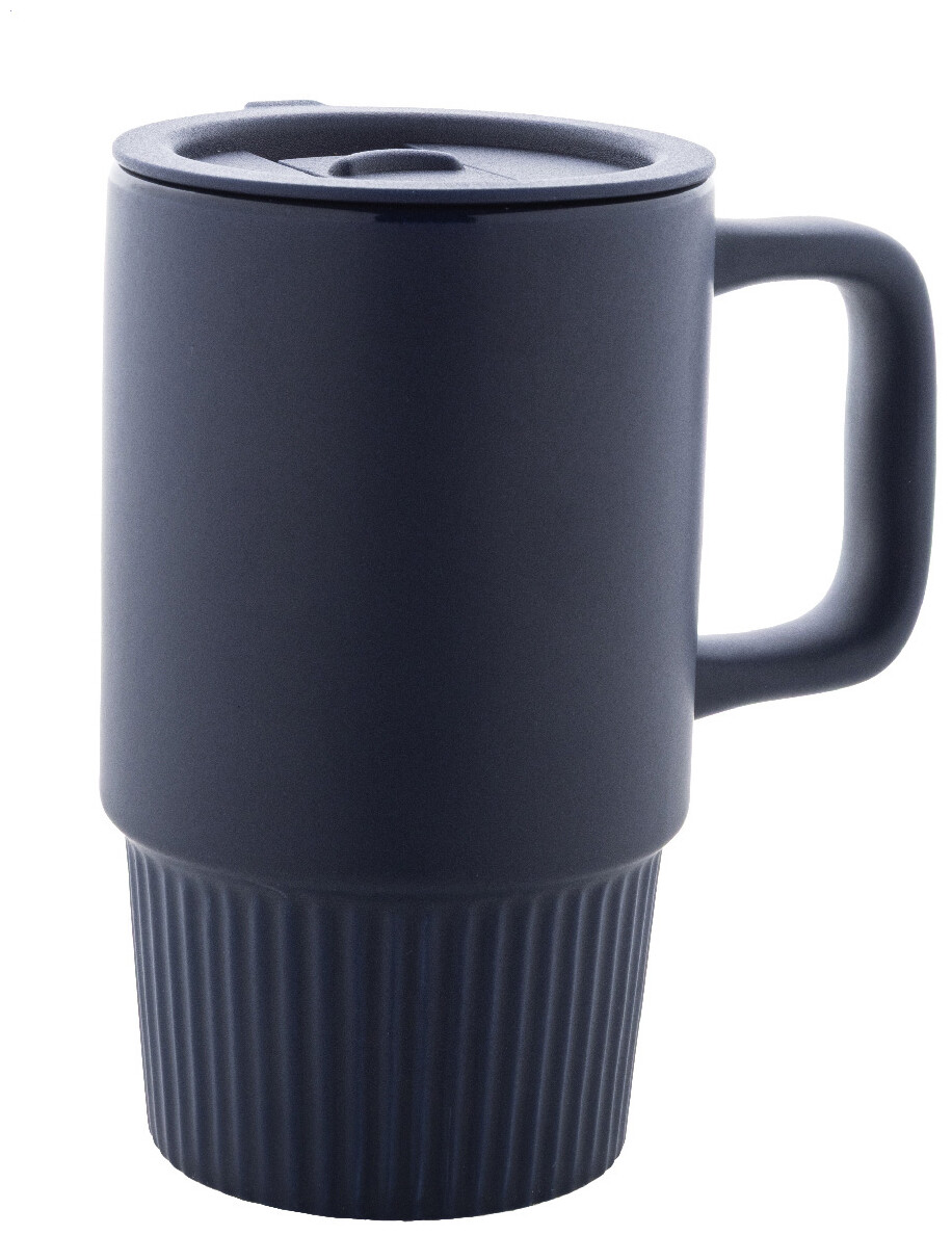 Vysoce kvalitní keramický cestovní hrnek s matným vnějším povrchem a plastovým víčkem z polypropylenu. 420 ml.