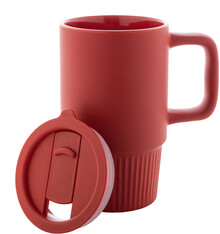 Vysoce kvalitní keramický cestovní hrnek s matným vnějším povrchem a plastovým víčkem z polypropylenu. 420 ml.