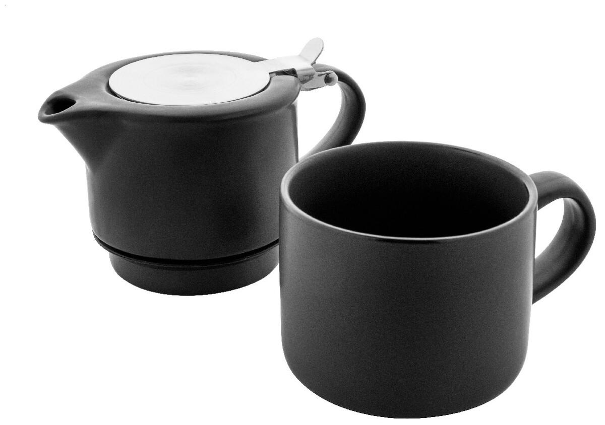 Vysoce kvalitní keramická čajová sada s matným povrchem. Včetně konvice na čaj (430 ml) s víčkem z nerezové oceli a sítkem na čaj, navržená pro úhledné stohování na odpovídající hrnek (400 ml). V krabičce z kraftového papíru.