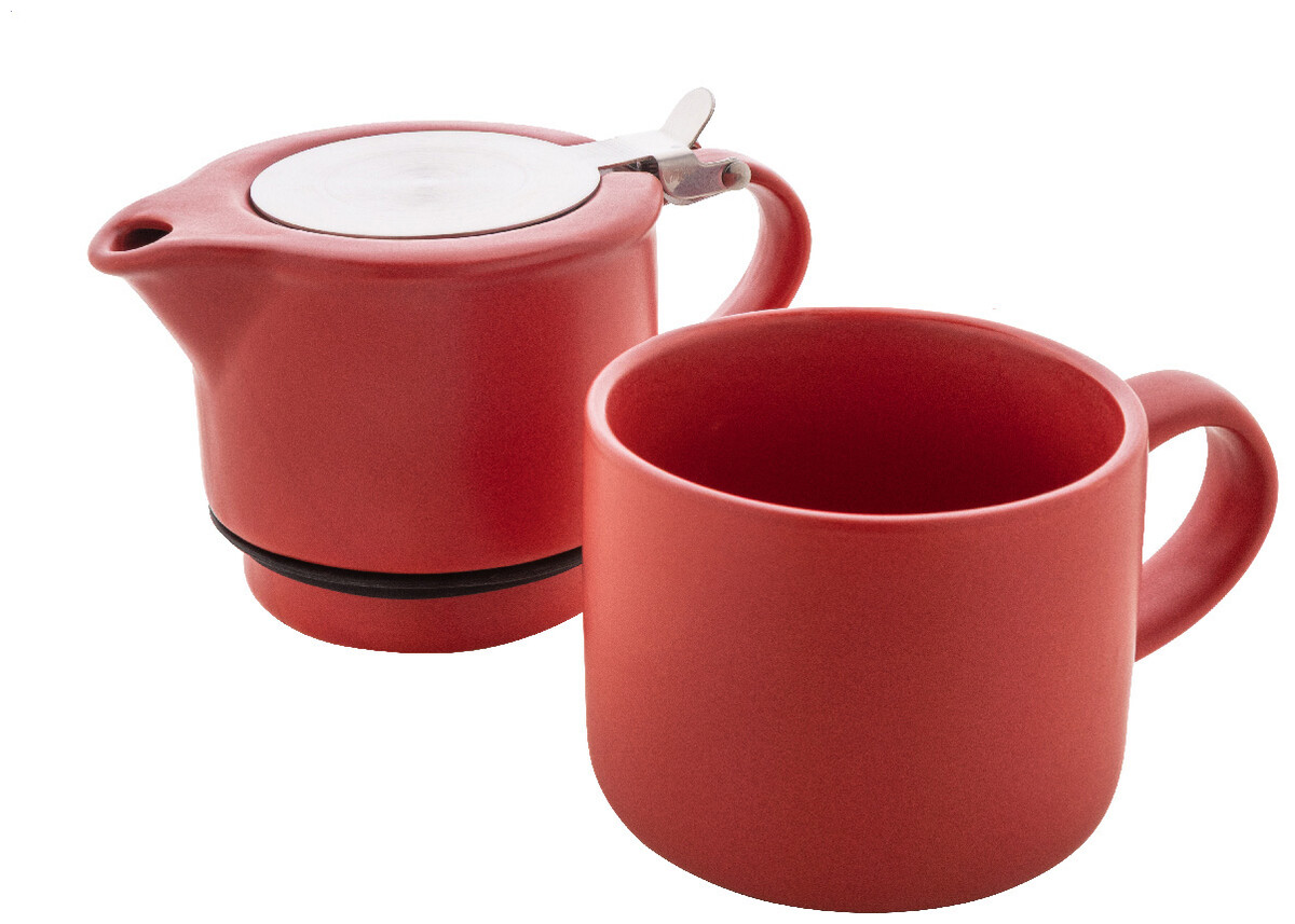 Vysoce kvalitní keramická čajová sada s matným povrchem. Včetně konvice na čaj (430 ml) s víčkem z nerezové oceli a sítkem na čaj, navržená pro úhledné stohování na odpovídající hrnek (400 ml). V krabičce z kraftového papíru.