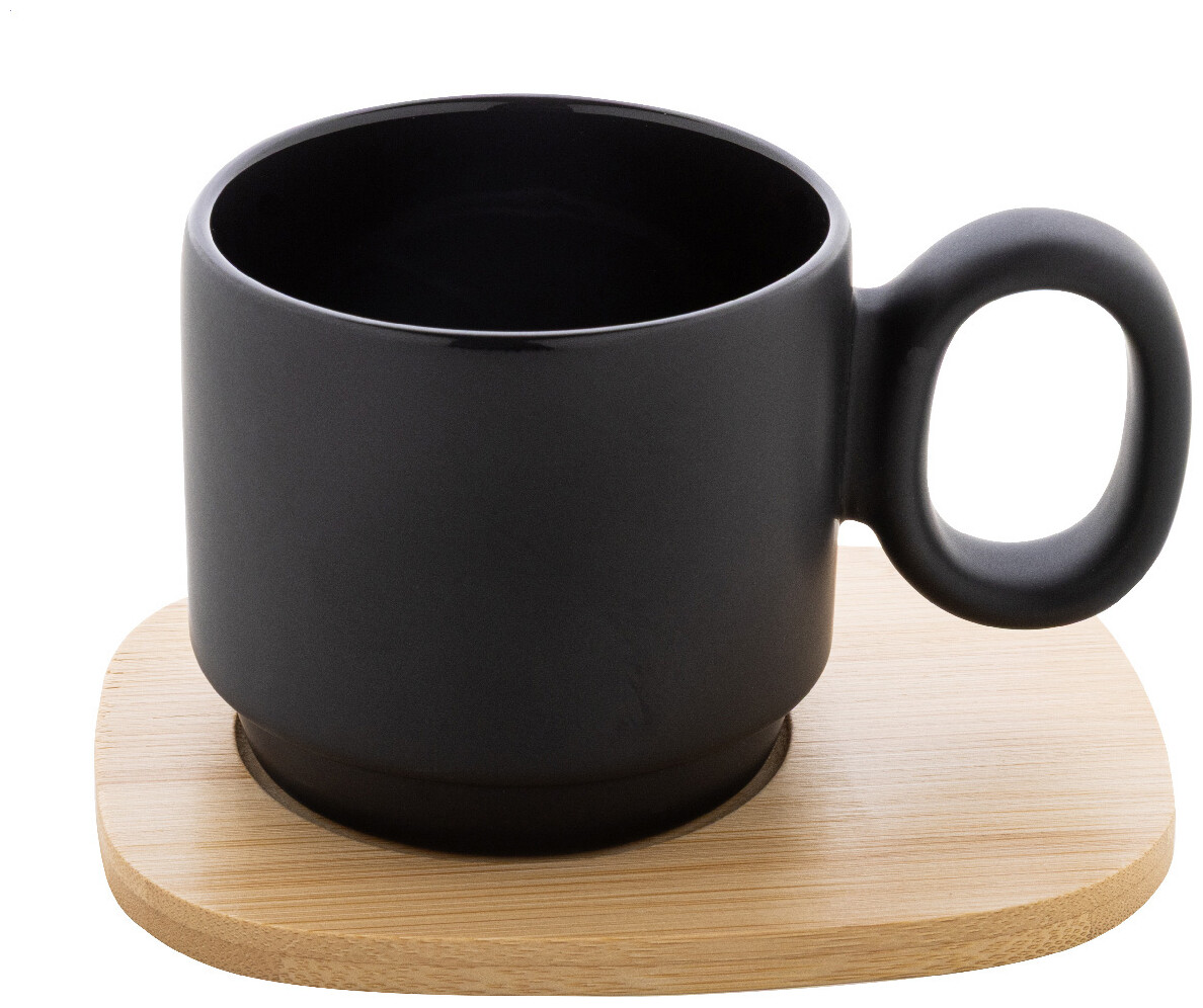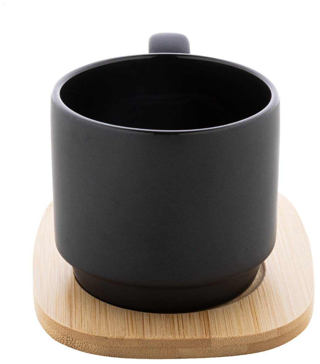 Vysoce kvalitní keramický hrnek s matným vnějším a lesklým vnitřním povrchem. Včetně bambusového servírovacího podnosu. 220 ml. V krabičce z kraftového papíru.