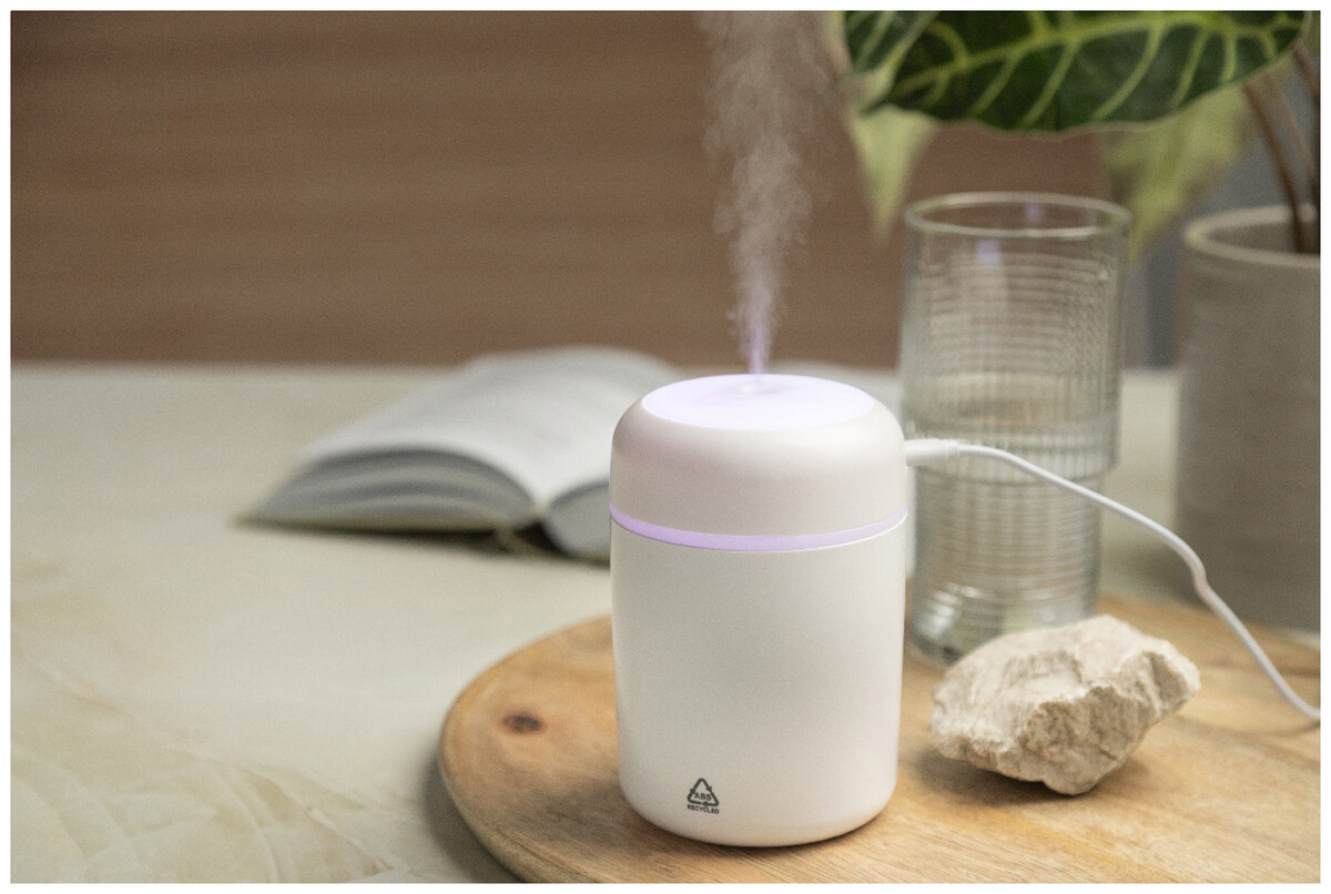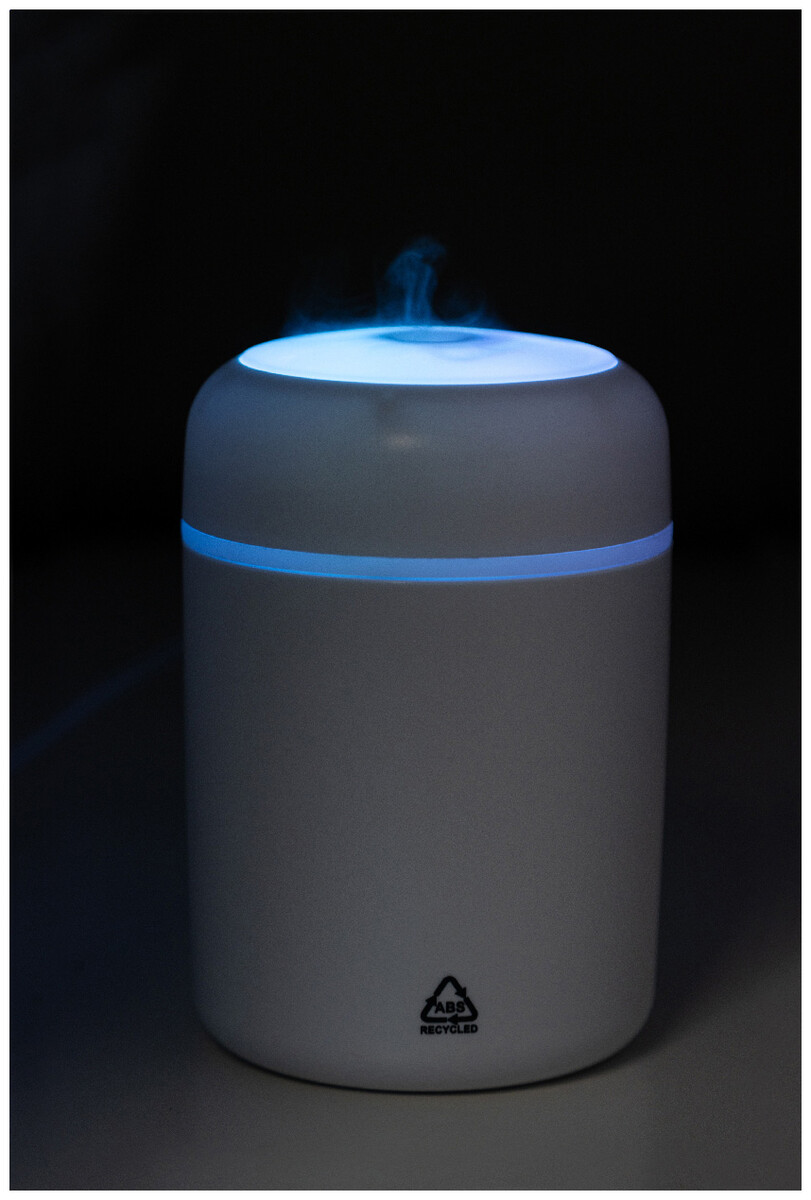 Stolní zvlhčovač vzduchu z recyklovaného ABS materiálu s vícebarevným LED světlem. Včetně USB nabíjecího kabelu. Objem nádržky: 280 ml.