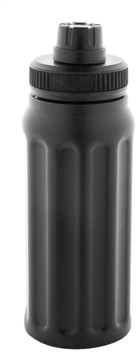 Dvoustěnná termoska z recyklované nerezové oceli s vertikálními drážkami. S víčkem z polypropylenu a s integrovaným držadlem. 540 ml.