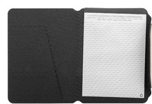 Složka na dokumenty A4 z RPET polyesteru s několika vnitřními kapsami a magnetickým zapínáním s detaily z ořechového dřeva. S linkovaným blokem z recyklovaného papíru s 20 listy.