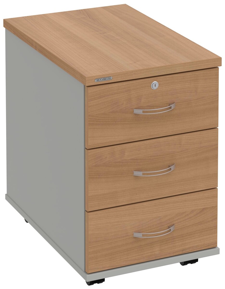 Kancelářské kontejnery nabízíme ve 4 modelech, které se liší uspořádáním zásuvek. Využití naleznou,spolu s ostatními řadami kancelářského nábytku HOBIS, ve všech kancelářských prostorech. Rozměry jsou 40 cm šířka, 60 cm hloubka a 60 cm výška. Protože jsme si vědomi nároků na zajištění bezpečnosti obsahu kontejnerů, osadili jsme většinu z nich zámky s centrálním zamykáním. Stačí zamknout jednu zásuvku a současně tak uzamknete i všechny ostatní. Díky integrovanému systému STOPCONTROL v uzamykacím mechanismu se nemusíte bát převrhnutí kontejneru nebo případného skřípnutí rukou. Systém zaručí, že při otevření jedné zásuvky se ostatní zásuvky automaticky zablokují. Stoly můžete vybírat z nabídky kancelářského nábytku HOBIS.