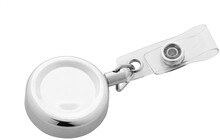 Exkluzivní kovový držák na ski pass s vysoce lesklou metalickou povrchovou úpravou. Zapínání na druk, teleskopická šňůra a kovová spona.