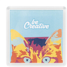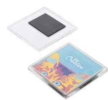 Čtvercový akrylový magnet na ledničku s plnobarevnou papírovou vložkou na zakázku. Cena zahrnuje digitální tisk, cena nezahrnuje tiskovou přípravu. Min. mn.: 100 ks.