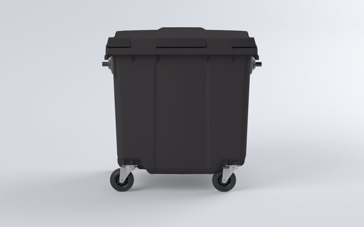 Kontejner s horním výsypem o objemu 1100 litrů je opatřen plochým víkem.
