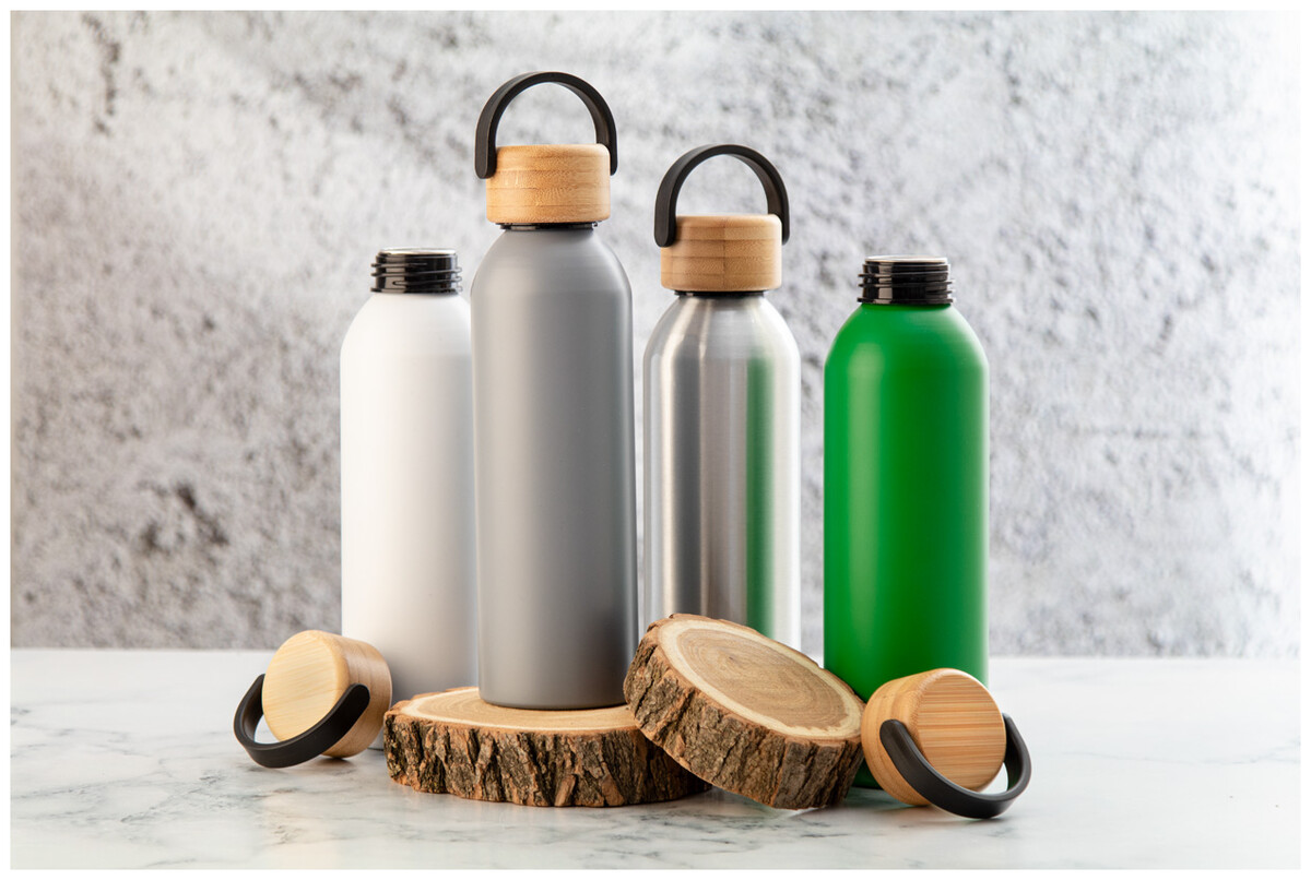Hliníková láhev s bambusovým víčkem, 600 ml.